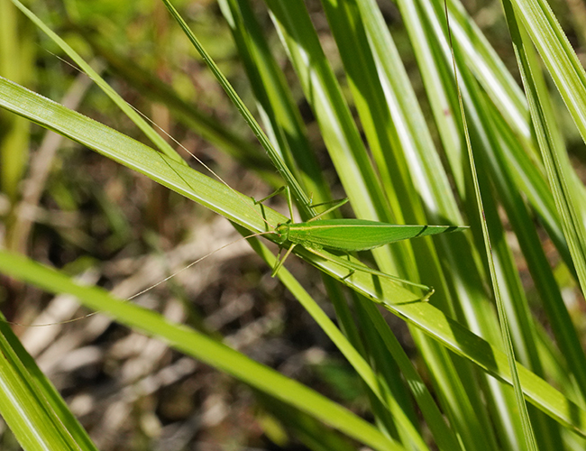 ♂と♀で見た目が違う.♀は黄白色のスジ翅端まで伸びるが,♂は背が茶褐色になる.