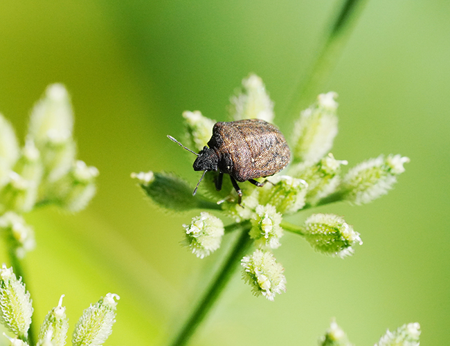 目立たないカメムシだが,ヤブジラミが生えていると目にすることが多い.同じクロカメムシ亜科の珍種コブハナダカカメムシがMRTの森から1.5km離れた大谷林道で県初記録として確認されている.