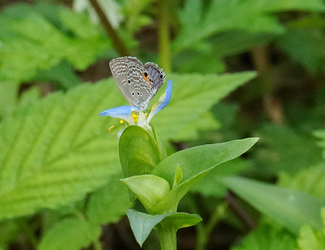 かつては迷蝶として沖縄本島で1992に確認されただけであったが,与那国島で2001年に発生し,2006年には石垣島でも発生した.その後北上を続け,2007年に県内の南郷町と都井岬で確認し(小松・森岡 2007),2009年には宮崎市内でも見られるようになった(小松 2009).現在では,初夏以降は県内で普通に見られ,秋になると飛んでいる青いシジミは殆どがクロマダラソテツシジミということもある.もちろん自然共生サイト内でも多く見られる.