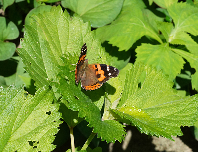 赤くて目立つタテハチョウ.イラクサやカラムシなど,いわゆる毛のある雑草を寄主とする.幼虫は葉を綴って巣を造る.成虫で越冬する.