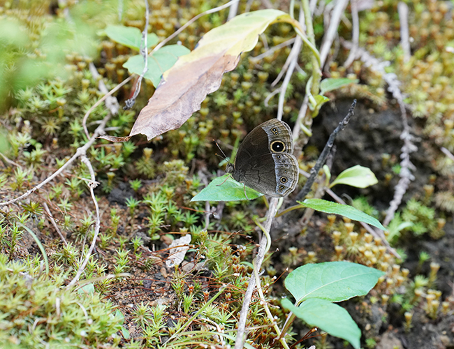 ヒメジャノメに似ているが,林内の暗い場所を好む.ヒメジャノメに比べると,翅裏の白色帯がゆるくカーブして,少し紫色がかかる.