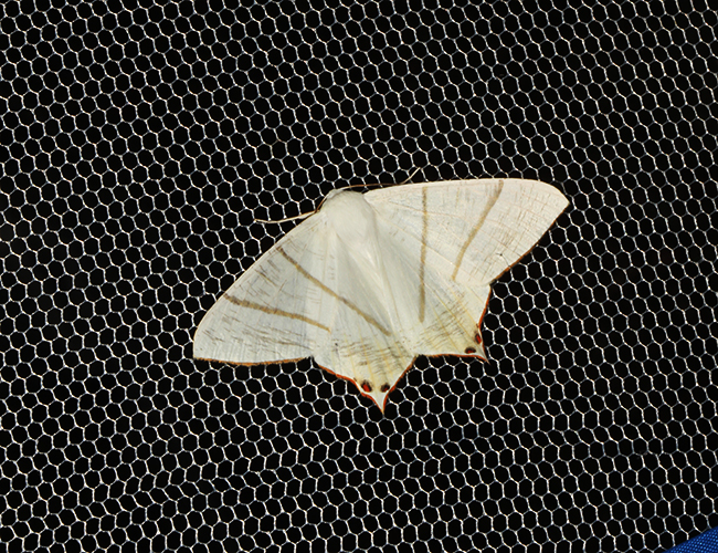 中型で白色の綺麗なエダシャク.広食性で針葉樹も寄主とし,個体数も多い.