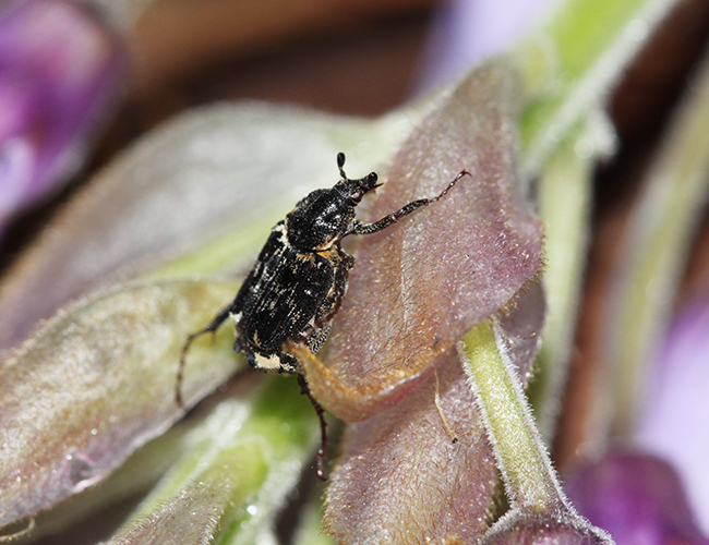 小さくて平べったい黒色の地味なハナムグリ.各種の花に多い.