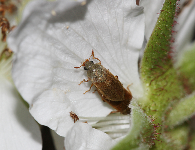 春に各種の花で見られるが,特にクサイチゴなどのバラ科に多い.次種キスイモドキに似ているが,♂の前脛節に突起があることなどから違いが分かる.