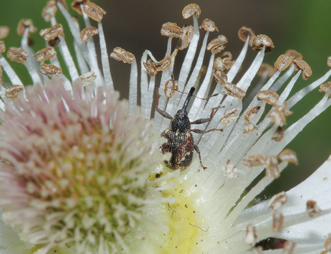 キイチゴなどの花の中にいるの小さなゾウムシ.個体数はそれほど多くない.