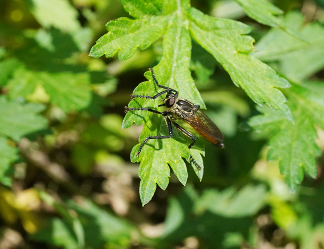 腹部が黄褐色のムシヒキアブ.個体数は多くない.