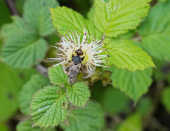 メバエは眼が大きくて良く目立つ.ハナバチやスズメバチなどに寄生する.個体数は多くない.