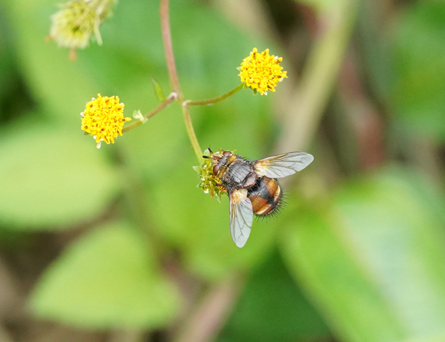 鱗翅目の幼虫に寄生する.個体数は多いが近似種も多く,写真はセスジハリバエと思われるが同定は難しい.