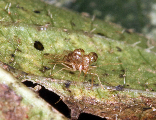 体長2.6〜3.2mm 1996年に大阪府で初めて確認された外来種で、その後九州北部まで分布を広げ、2015年には延岡市北川町で採集されたという情報があった。2016年に調査したところ、日向市まで勢力を広げていることが分かった。(延岡市、門川町、日向市、高鍋町、綾町、宮崎市、日南市)