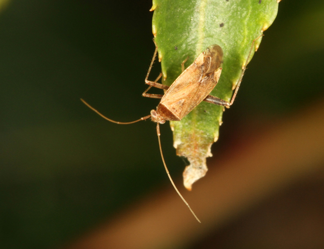 体長5〜6mm ヒゲナガカスミカメは触覚第2〜4節が同じくらいの太さになるのが特徴で,里山生息種の一つとされている.市街地に残る里山で見られる。(延岡市、宮崎市)