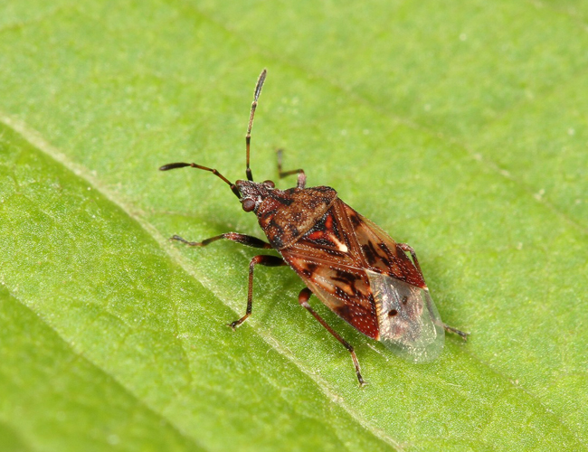体長5mm内外 紫色をしたナガカメムシで、県内には広く分布し、数も多い。(高千穂町、日之影町、延岡市、日向市、都農町、西都市、えびの市、小林市、高原町、綾町、宮崎市、日南市、串間市)