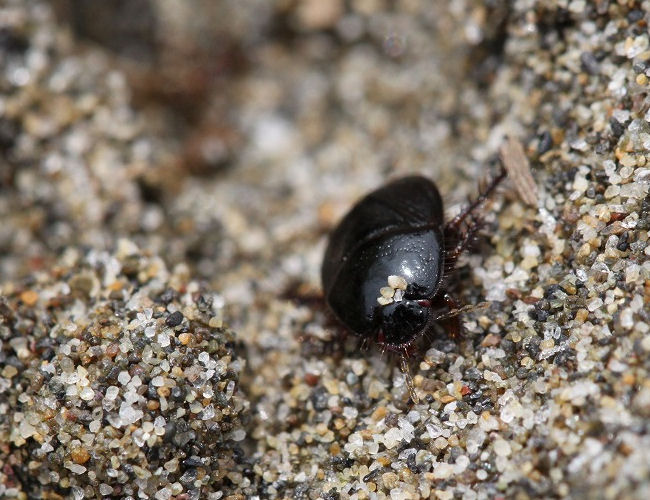 体長3.4〜4.5mm 頭部前縁は長毛と短棘を持ち,頭部中葉の先端部に1対の短棘がある.海辺の草の根際に生息し,海浜性ハンミョウと同じように海辺の自然環境を知るうえで重要な種類である.(日向市,宮崎市)
