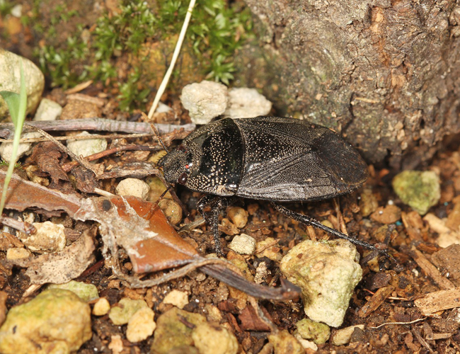 体長14〜20mm 最も大きいツチカメムシで,チビツヤツチカメムシの6〜8倍の大きさがある.触角は4節しかない.昼間は見つけにくいが,灯火に飛来するので,郊外の自動販売機やコンビニの周りで見つかることがある.(日之影町,延岡市,西都市,小林市,都城市,綾町,国富町,宮崎市,日南市,串間市)