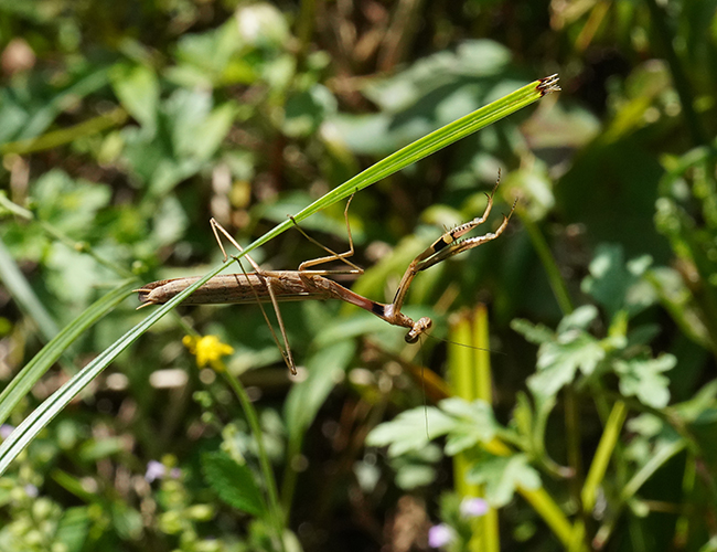 腿節に白・黒紋があるのが特徴.オオカマキリより小さく,ヒメカマキリより大きい.