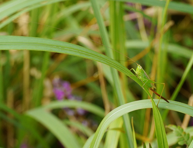 産卵管が長く,まっすぐに伸びる.県内各地で見られる.