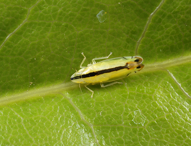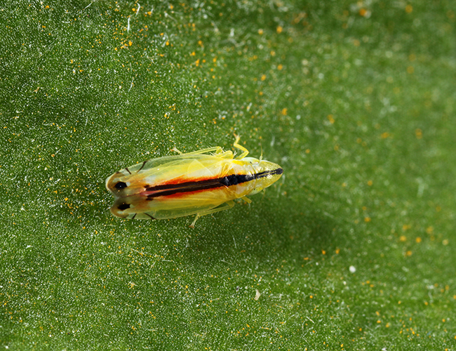 少し変わった形をした綺麗なヨコバイ.南方系で,冬でも幼虫と成虫が見つかる.