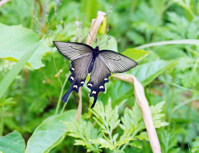 ウマノスズクサ科植物を寄主とする原始的なアゲハチョウ.宮崎ではオオバウマノスズクサを食べるが,それに含まれる毒を体内に溜め込み,天敵の鳥に対抗している.
