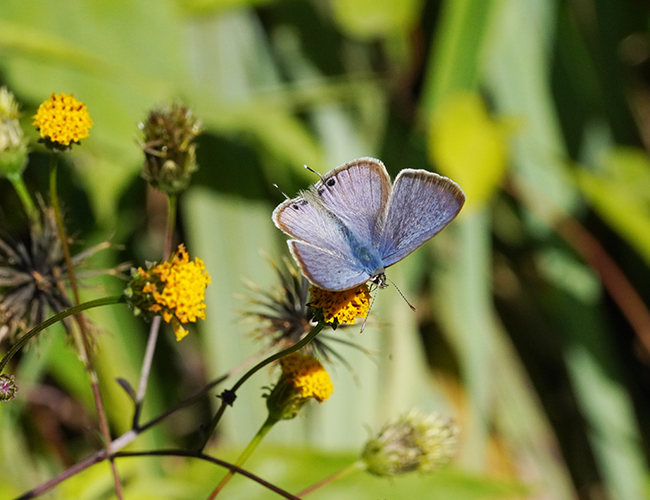毎年日本列島を北上するシジミチョウ.秋になると個体数が増えるが,ほとんどが越冬できずに死んでしまう.宮崎県は成虫が越冬できる数少ない地域なので,春にも成虫を見ることができる.