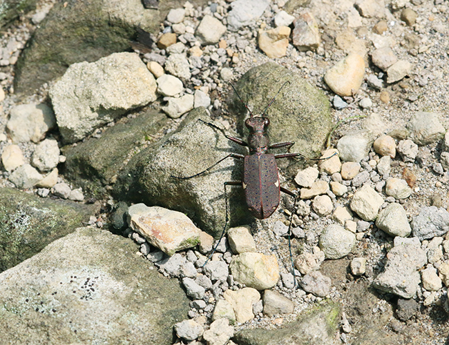 県内に幅広く分布し,個体数も多い.自然共生サイト内でも地味なハンミョウがいれば,ニワハンミョウと思って間違いない.