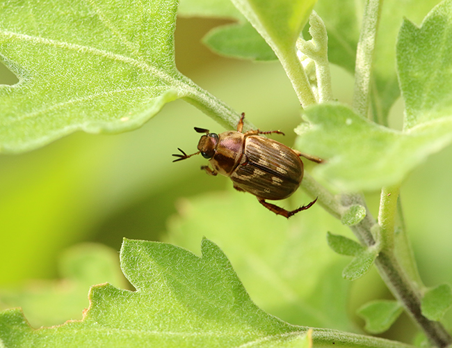 林縁の草の上などにおり,黄褐色と黒褐色のまだら模様が目立つ.