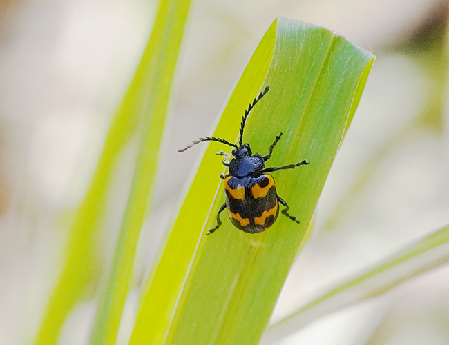 名前のとおりイタドリで見つかる.赤と黒の模様が付いた綺麗なハムシ.下の写真のように黄色い個体もいる.