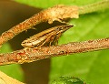 南方系のアワフキで,2016年発行の昆虫目録では分布域は奄美大島以南となっている.しかし,宮崎県内では1973年に宮崎市鏡洲で記録され(磯崎1974),2011年~2015年にかけて宮崎市と綾町で確認している(小松2015).その後も県内で確認したのは,すべて宮崎市以南の地域であったが,2024年に県北の延岡市で初めて確認した(小松2025).フタテンナガアワフキが県内で分布を広げていることは確実なようである.